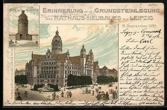 Lithographie Leipzig, Erinnerung an die Grundsteinlegung des Rathauses 1899