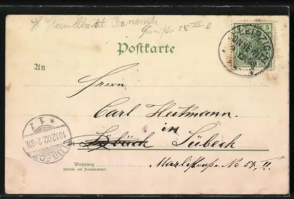 gelaufen 1902, Eckknick re. unten, guter Zustand