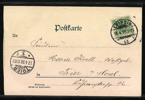 gelaufen 1898, re. Kante beschnitten, guter Zustand