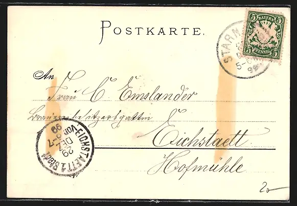 gelaufen 1899, rückseitig Klebe- und Papierreste, guter Zustand