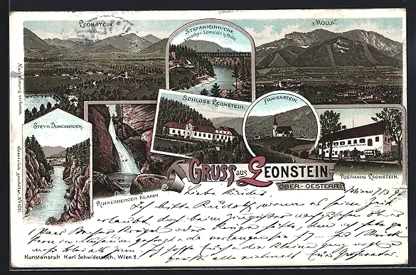 Lithographie Leonstein, Posthaus, Schloss, Frauenstein, Rinnerberger Klamm