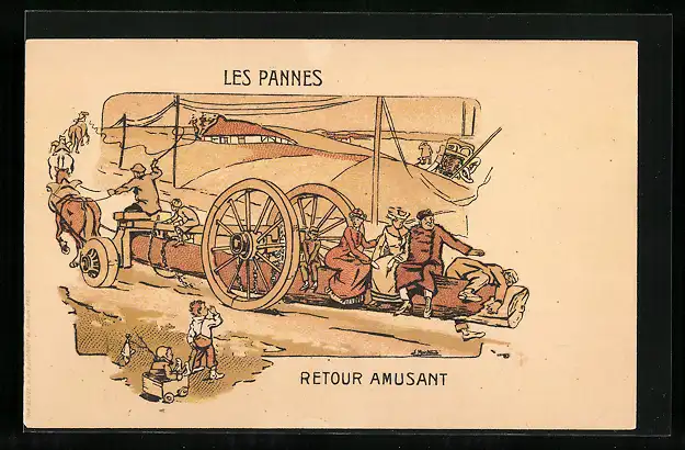 Lithographie Les Pannes, Retour Amusant, Transport eines Baumstammes per Pferdegespann