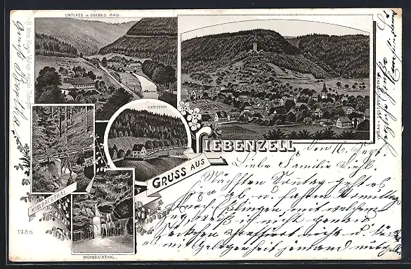 Lithographie Liebenzell, Cafehof, Kohlbachthal, Mohnbachthal, Totalansicht