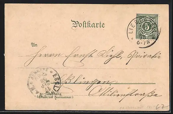 gelaufen 1898, Eckknicke links u. rechts, guter Zustand