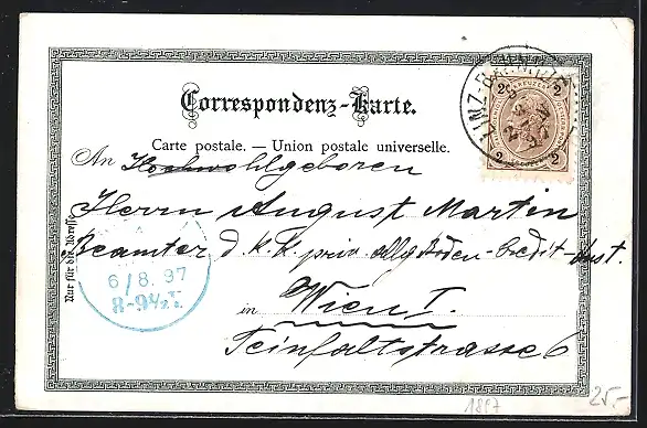gelaufen 1897, Eckknick li. oben, guter Zustand