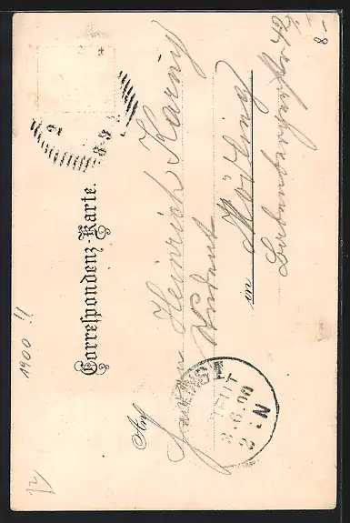 gelaufen 1900, Briefmarke entfernt, rückseitig Oberflächenschaden, guter Zustand