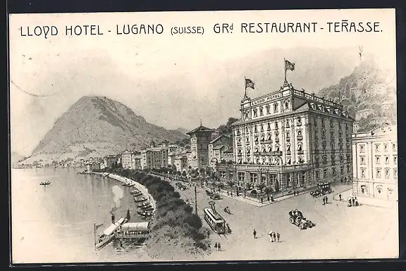 Lithographie Lugano, Lloyd Hotel, Grand Restaurant-Terrasse