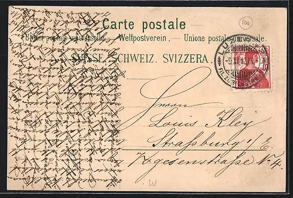 gelaufen 1912, Einriss re. mittig