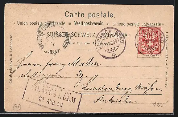 gelaufen 1898, Eckknick re. oben, guter Zustand