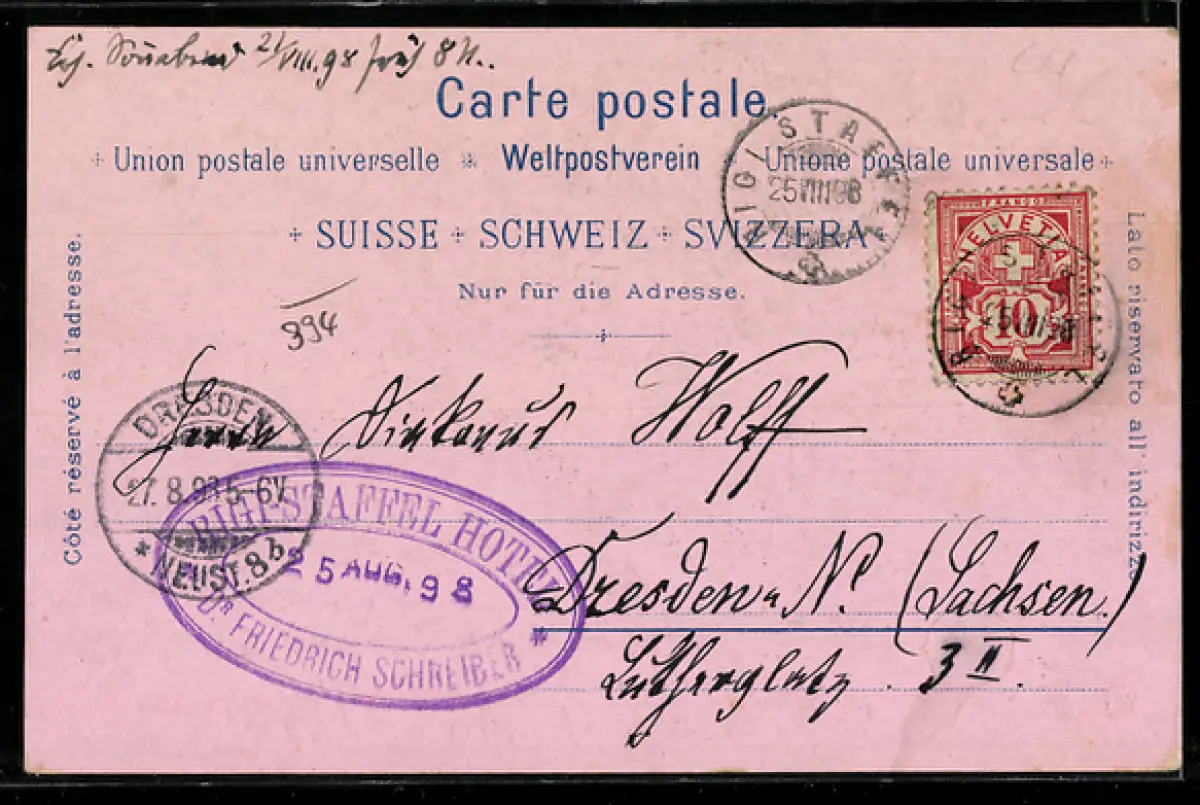 gelaufen 1898, Ecken bestoßen, Eckknick unten li., guter Zustand