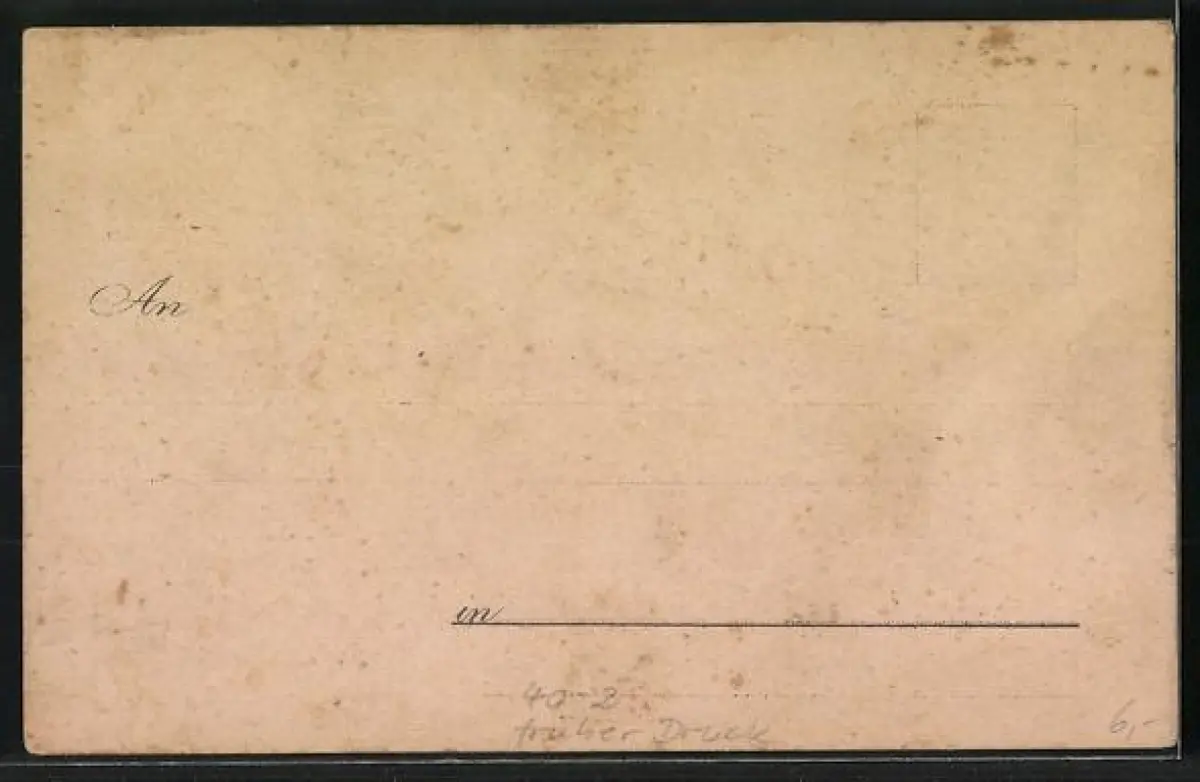 Personenbezogene Daten auf der Rückseite der Karte wurden durch blauen Textmarker unkenntlich gemacht. Die blauen Stellen sind auf die Vorderseite durchgeweicht und wirken sich negativ auf das Postkartenfoto aus