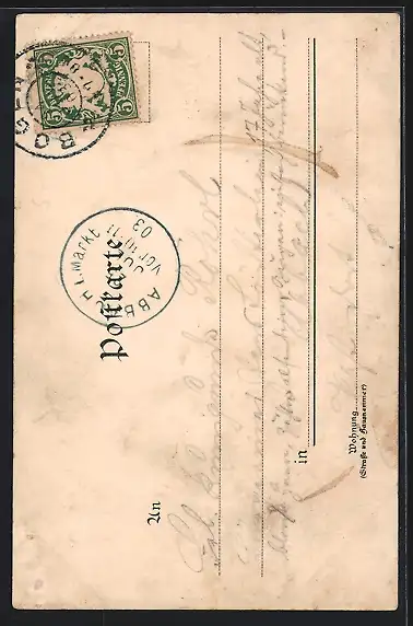 gelaufen 1903, Eckknick li. unten, guter Zustand