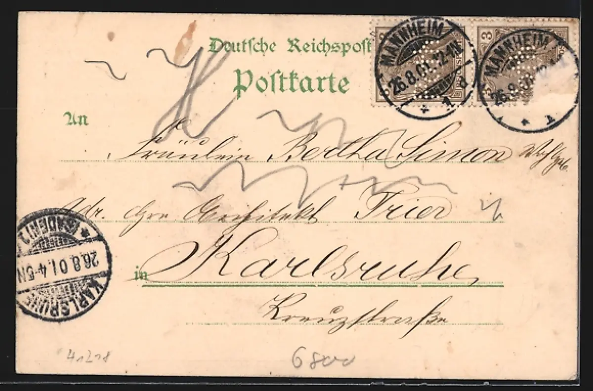 gelaufen 1901, Briefmarke entfernt, guter Zustand