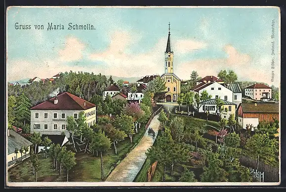 Lithographie Maria Schmolln, Weg zur Kirche