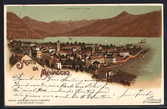 Lithographie Menaggio, Menaggio Veduta Generale