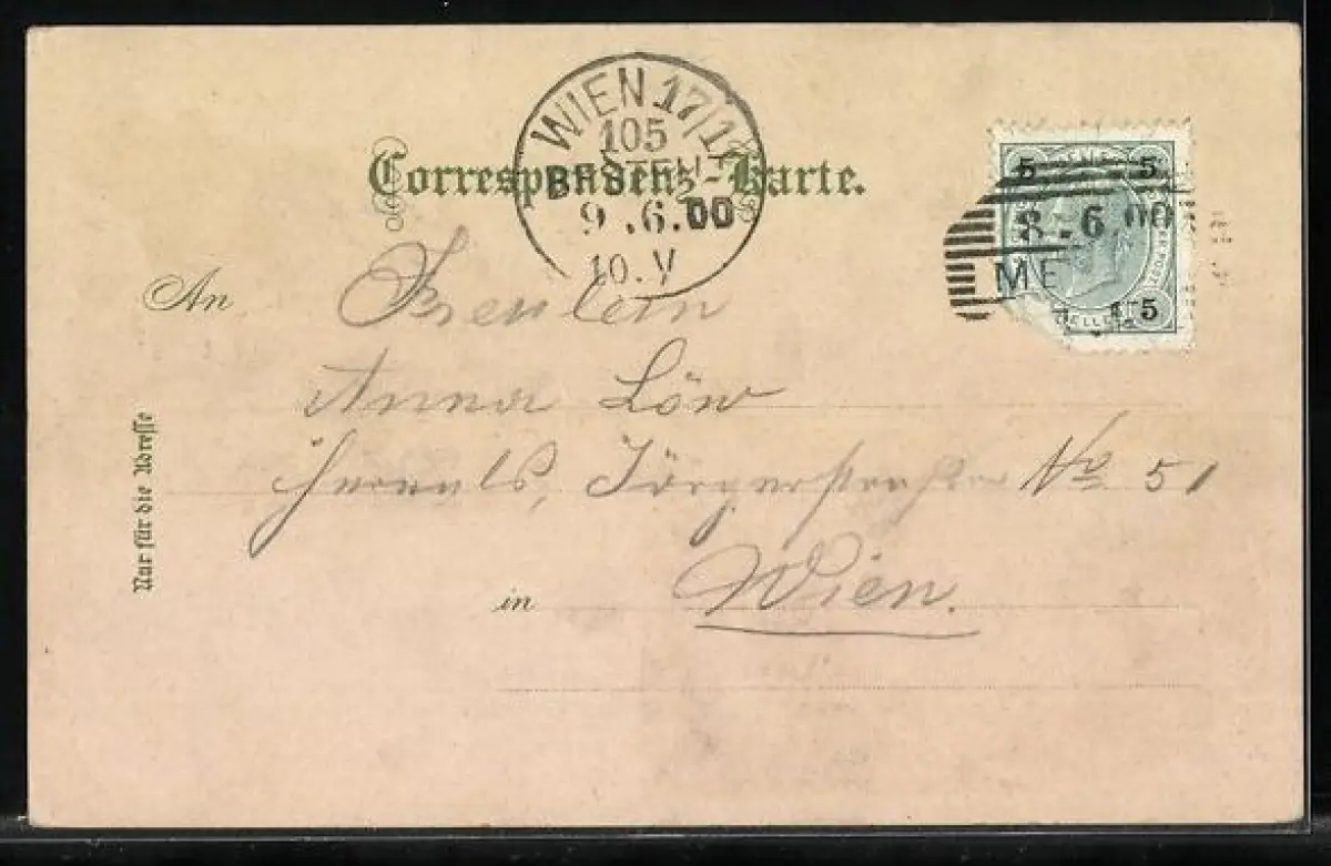 gelaufen 1900, Briefmarke entfernt, Stempelspur, guter Zustand
