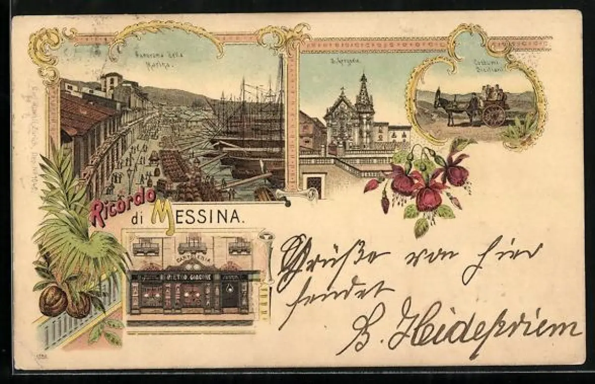 Lithographie Messina, Panorama della Marina, S. Gregorio & Cartoleria Pietro Ciacone