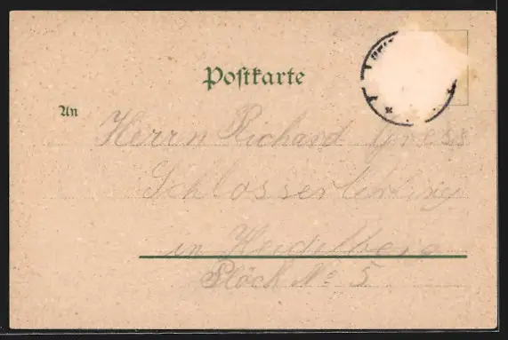 gelaufen, Briefmarke entfernt, rückseitig Oberflächenschaden, guter Zustand