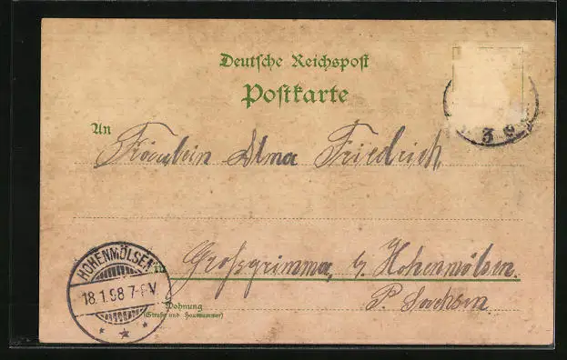 gelaufen 1898, Briefmarke entfernt, rückseitig Oberflächenschaden, guter Zustand
