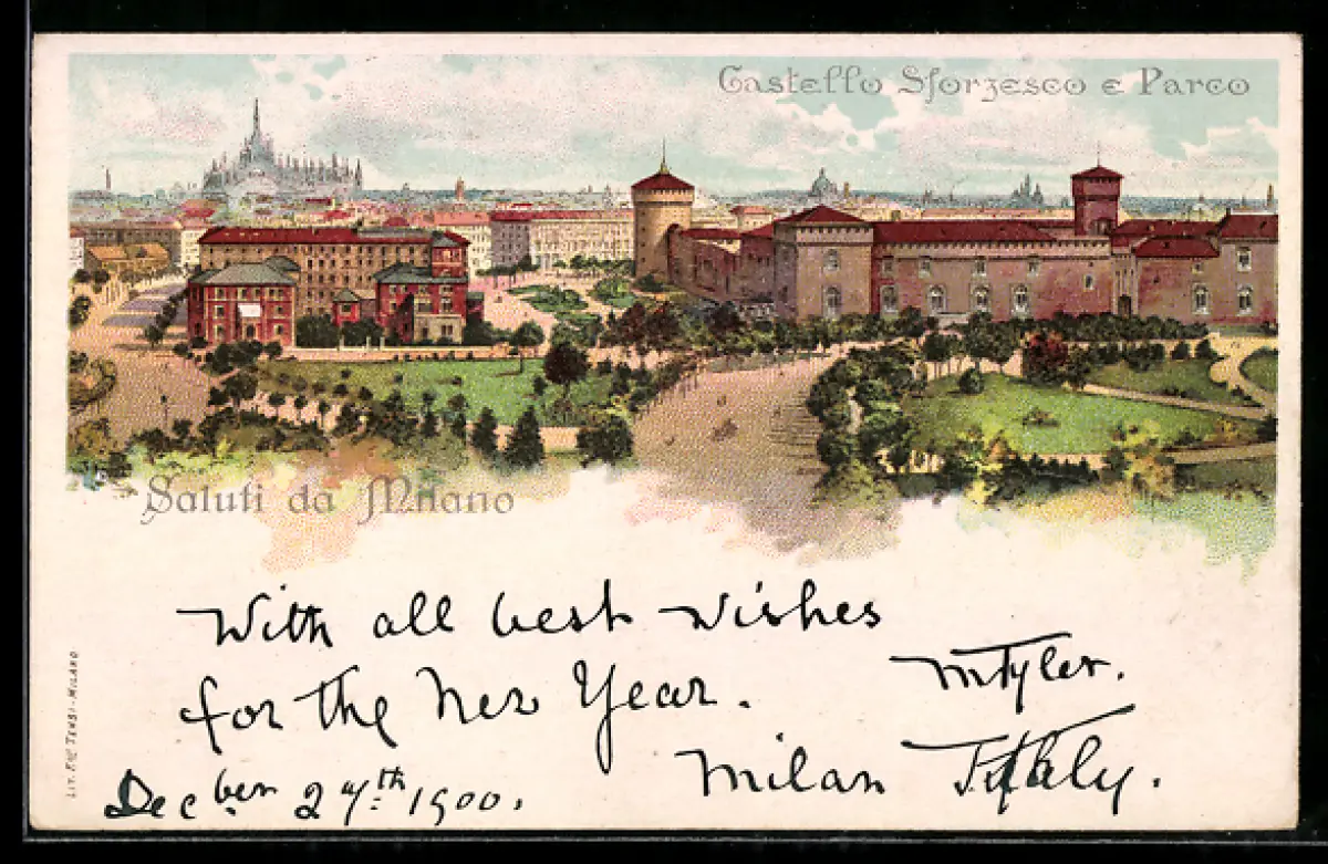Lithographie Milano, Castello Sforzesco e Parco