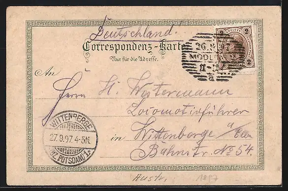 gelaufen 1897, Eckknick re. oben, guter Zustand
