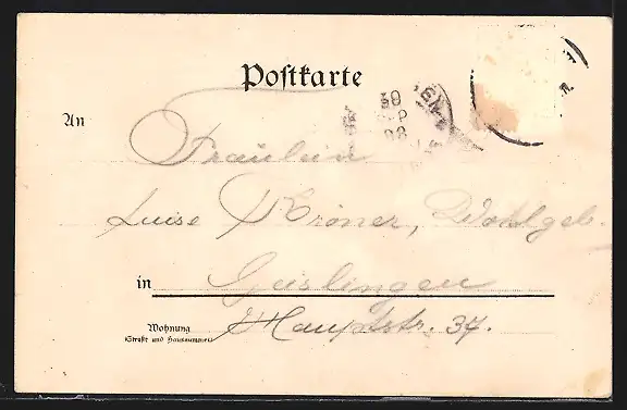 gelaufen 1898, Briefmarke entfernt, rückseitig Klebe- und Papierreste, guter Zustand