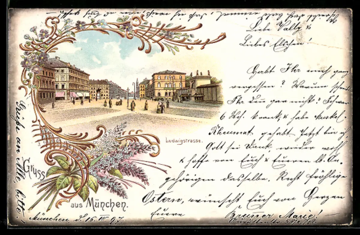 Lithographie München, Ludwigstrasse, Panorama