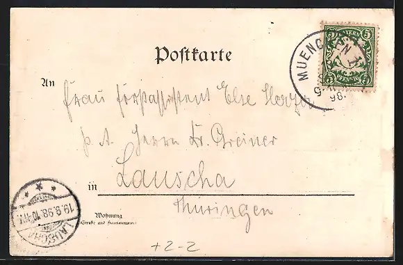 gelaufen 1898, Stempelspur, rückseitig Klebe- und Papierreste, rückseitig Oberflächenschaden, guter Zustand