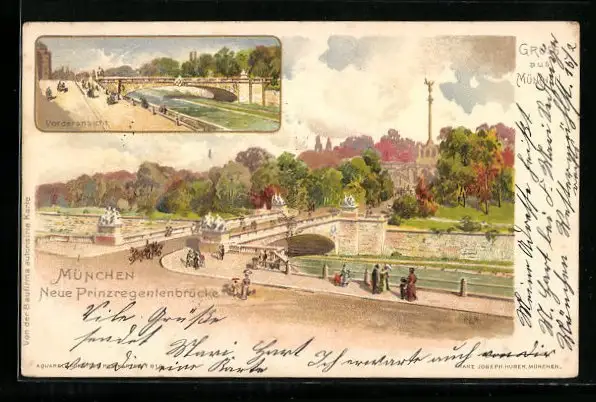 Lithographie München, Neue Prinzregentenbrücke, Vorderansicht