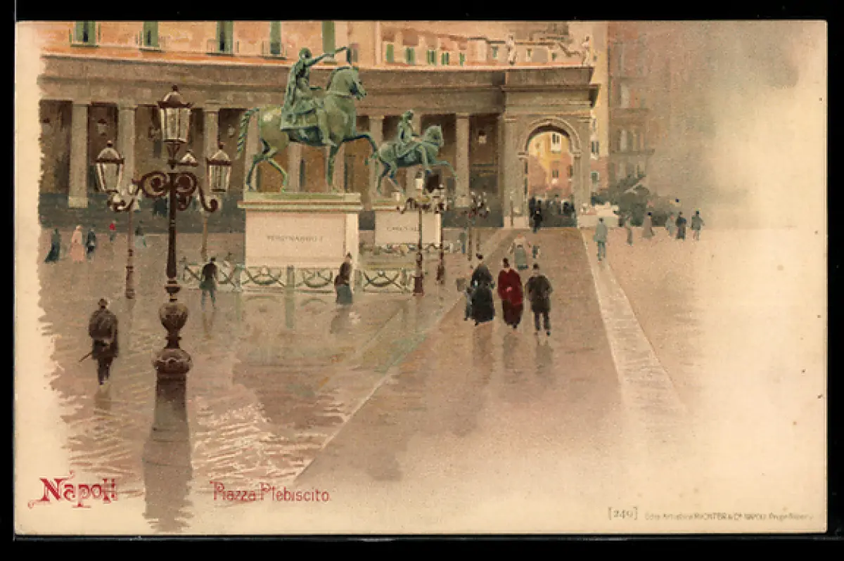 Lithographie Napoli, Piazza Plebiscito e Statua