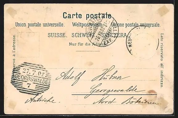 gelaufen 1902, Briefmarke entfernt, guter Zustand