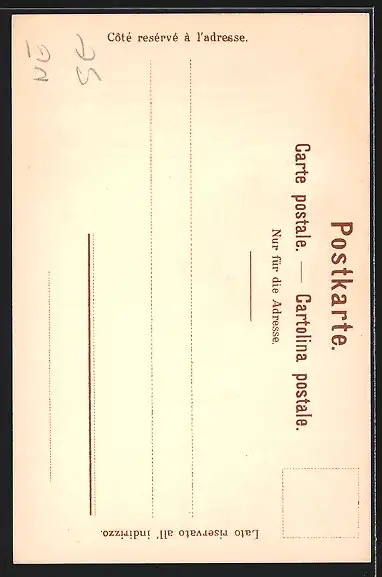 Personenbezogene Daten auf der Rückseite der Karte wurden durch blauen Textmarker unkenntlich gemacht. Die blauen Stellen sind auf die Vorderseite durchgeweicht und wirken sich negativ auf das Postkartenfoto aus