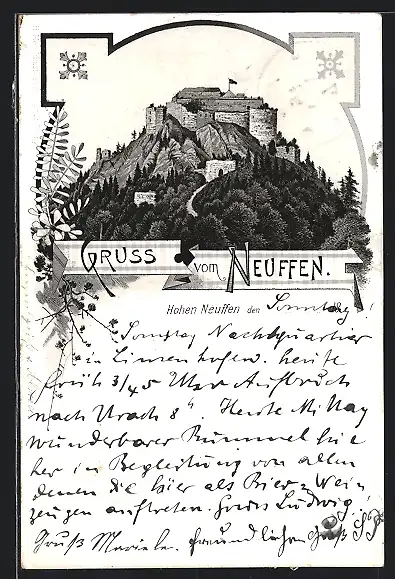 Lithographie Neuffen, Burg Hohen Neuffen