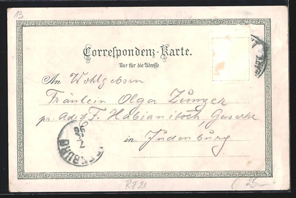 gelaufen 1896, Eckknick, Eckknick re. unten, guter Zustand