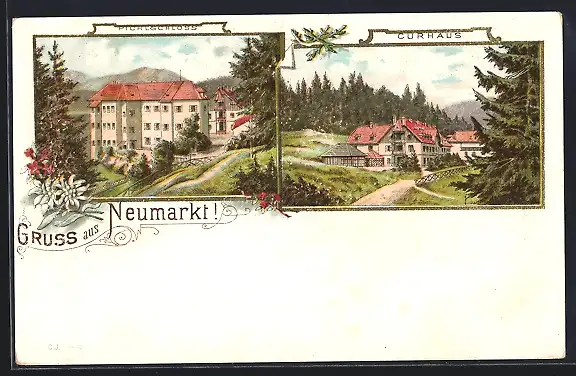 Lithographie Neumarkt in Steiermark, Pichlschloss, Blickzum Curhaus