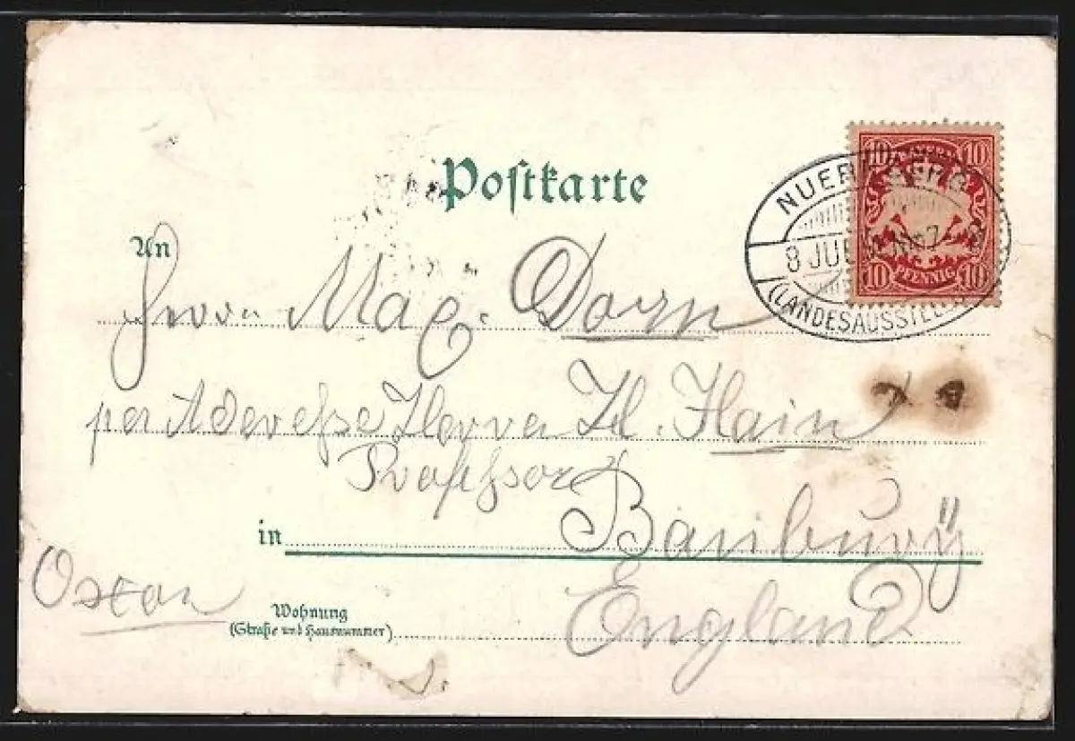 Lithographie Nürnberg, Bayerische Landesausstellung 1896, Kunsthalle und Industriegebäude