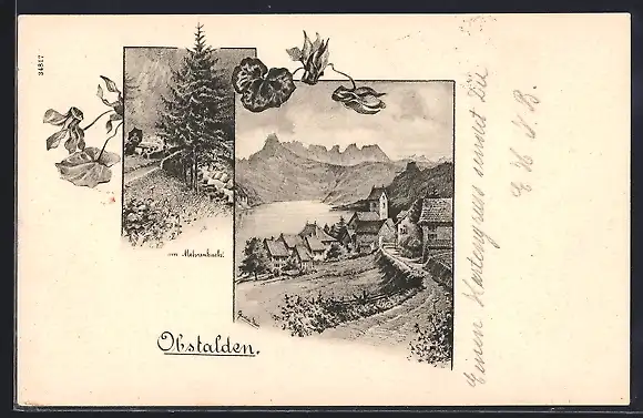 Lithographie Obstalden, Am Mehrenbach, Ortspartie