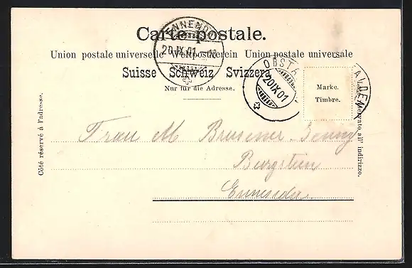 gelaufen 1901, Briefmarke entfernt, guter Zustand