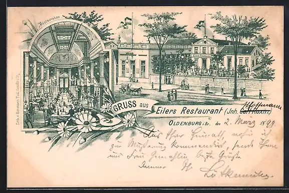 Lithographie Oldenburg i. Gr., Eilers Restaurant, Inh. Carl Roxin