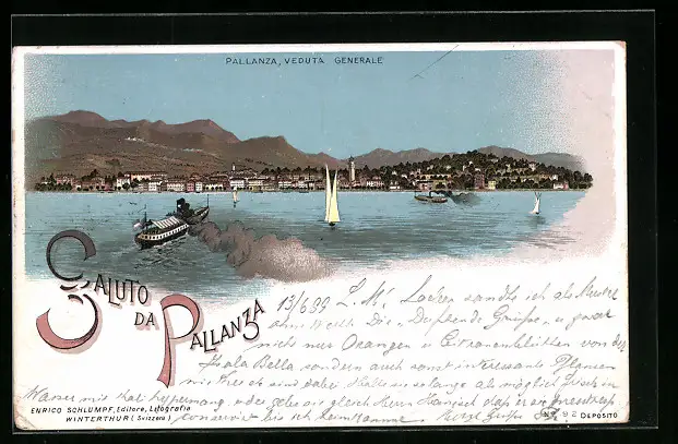 Lithographie Pallanza, Veduta Generale, Dampfer