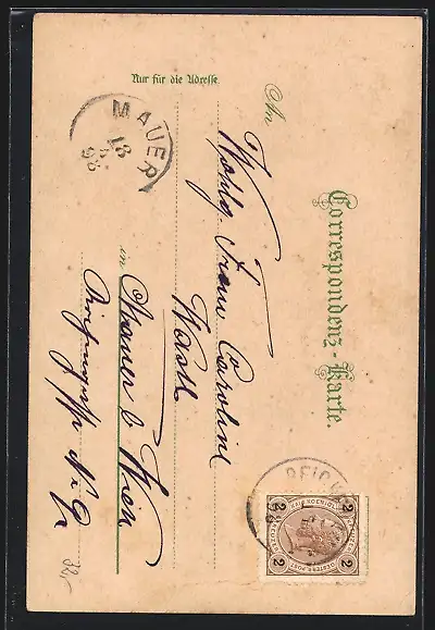 gelaufen 1898, Eckknick unten li., Bugspur unten, guter Zustand