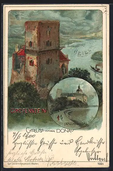 Lithographie Persenbeug a.d. Donau, Burg Greifenstein