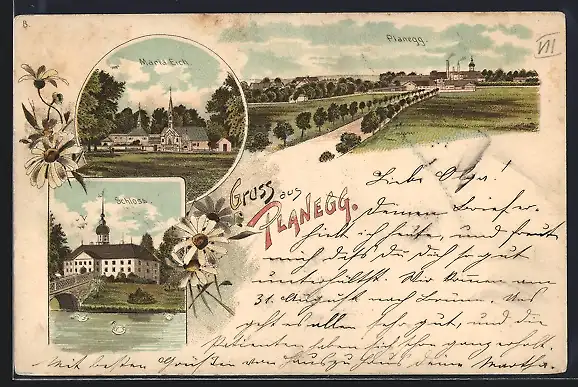 Lithographie Planegg, Maria Eich, Schloss, Ortsansicht