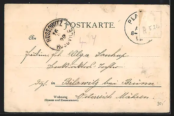 gelaufen 1899, Briefmarke entfernt, guter Zustand