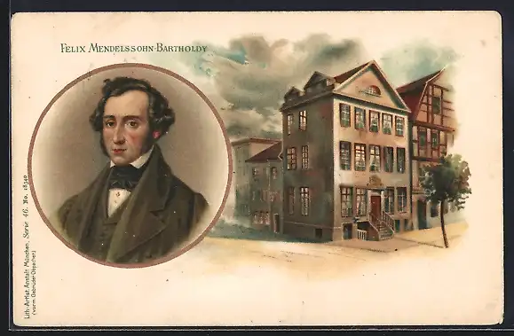 Lithographie Portrait des Komponisten Felix Mendelssohn-Bartholdy