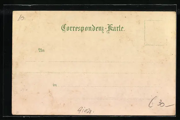 Personenbezogene Daten auf der Rückseite der Karte wurden durch blauen Textmarker unkenntlich gemacht. Die blauen Stellen sind auf die Vorderseite durchgeweicht und wirken sich negativ auf das Postkartenfoto aus