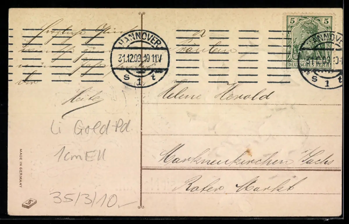 gelaufen 1909, Eckknick links oben, guter Zustand