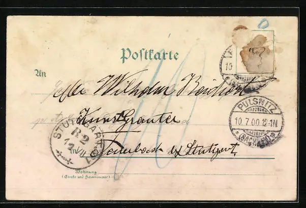 gelaufen 1900, Bugspur oben mittig, guter Zustand