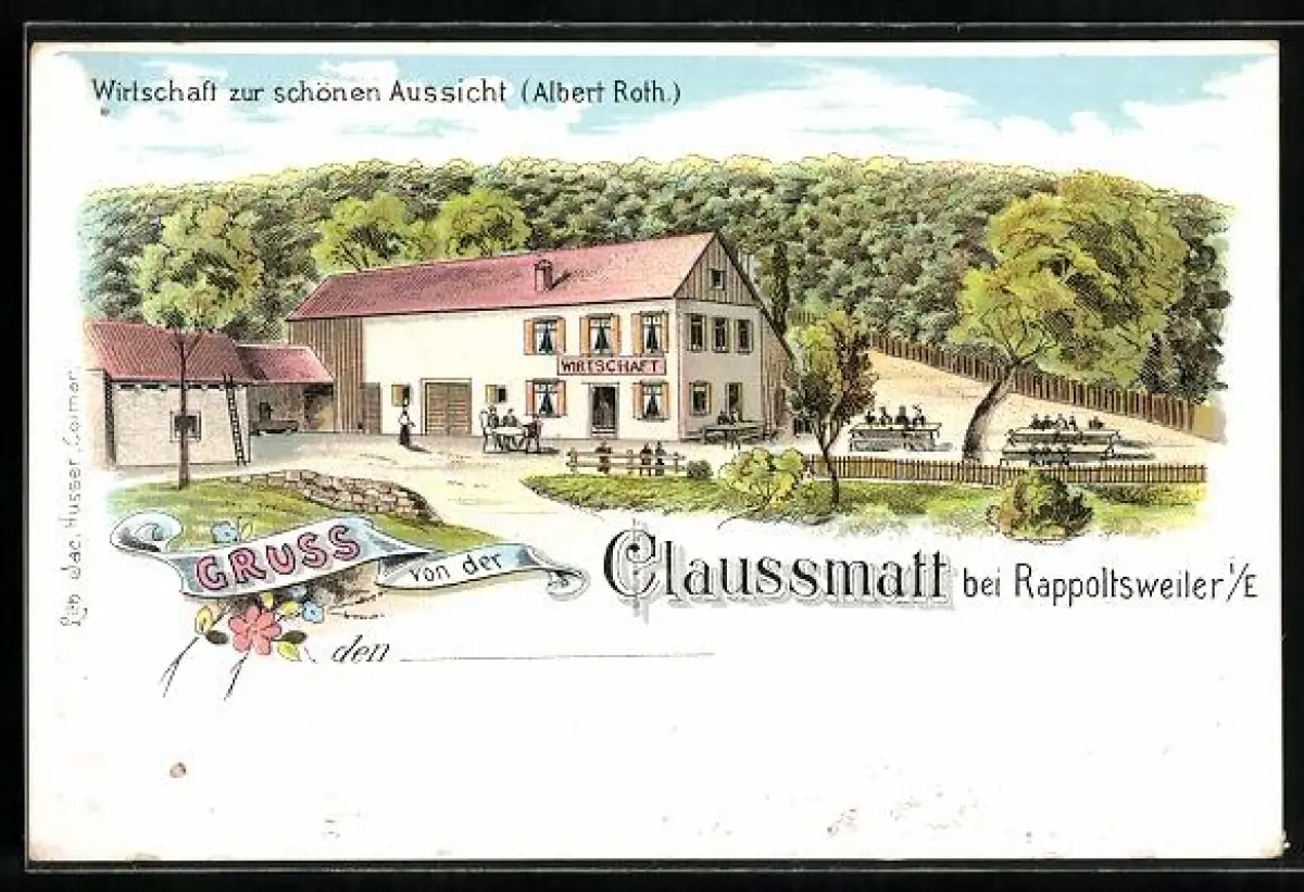 Lithographie Rappoltsweiler i. E., Gasthaus Claussmatt, Inh. Albert Roth