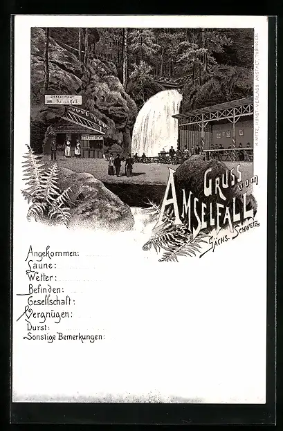 Lithographie Rathen /Sächs. Schweiz, Restaurant am Amselfall